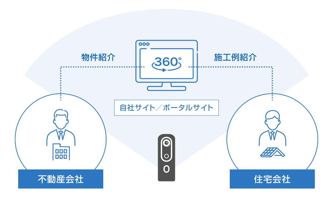 SUUMOやHOME'Sといったポータルサイトでも360度画像が掲載できますので不動産会社の場合は自社サイトと、ポータルサイト両方で活用出来ます。